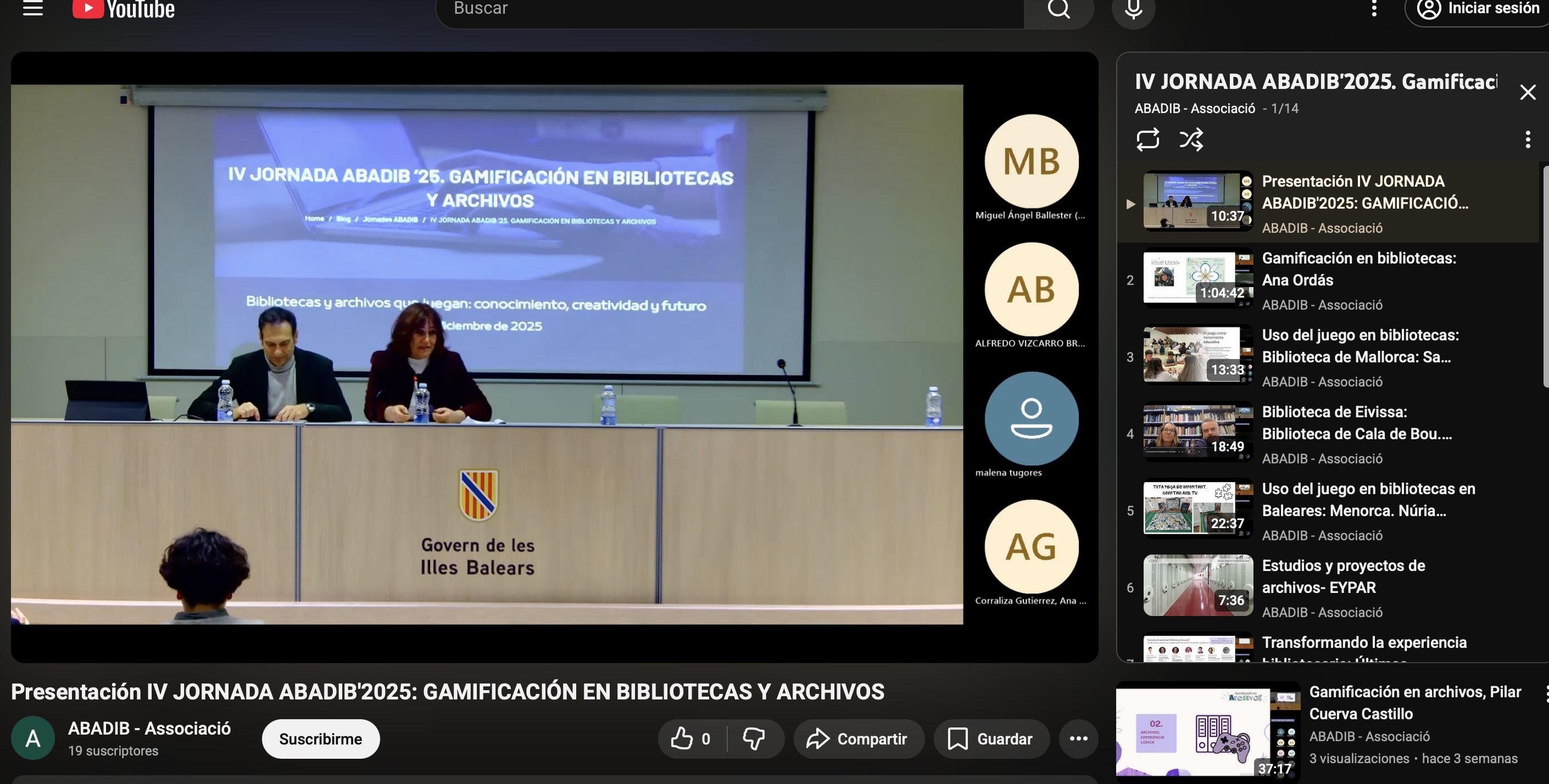 Vídeos de les IV Jornades ABADIB’25. Gamificación en bibliotecas y archivos.